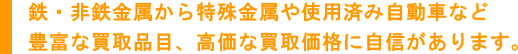 そのほかホームページ内でご紹介しているもの以外にも様々な金属くずの高価買取が可能です。